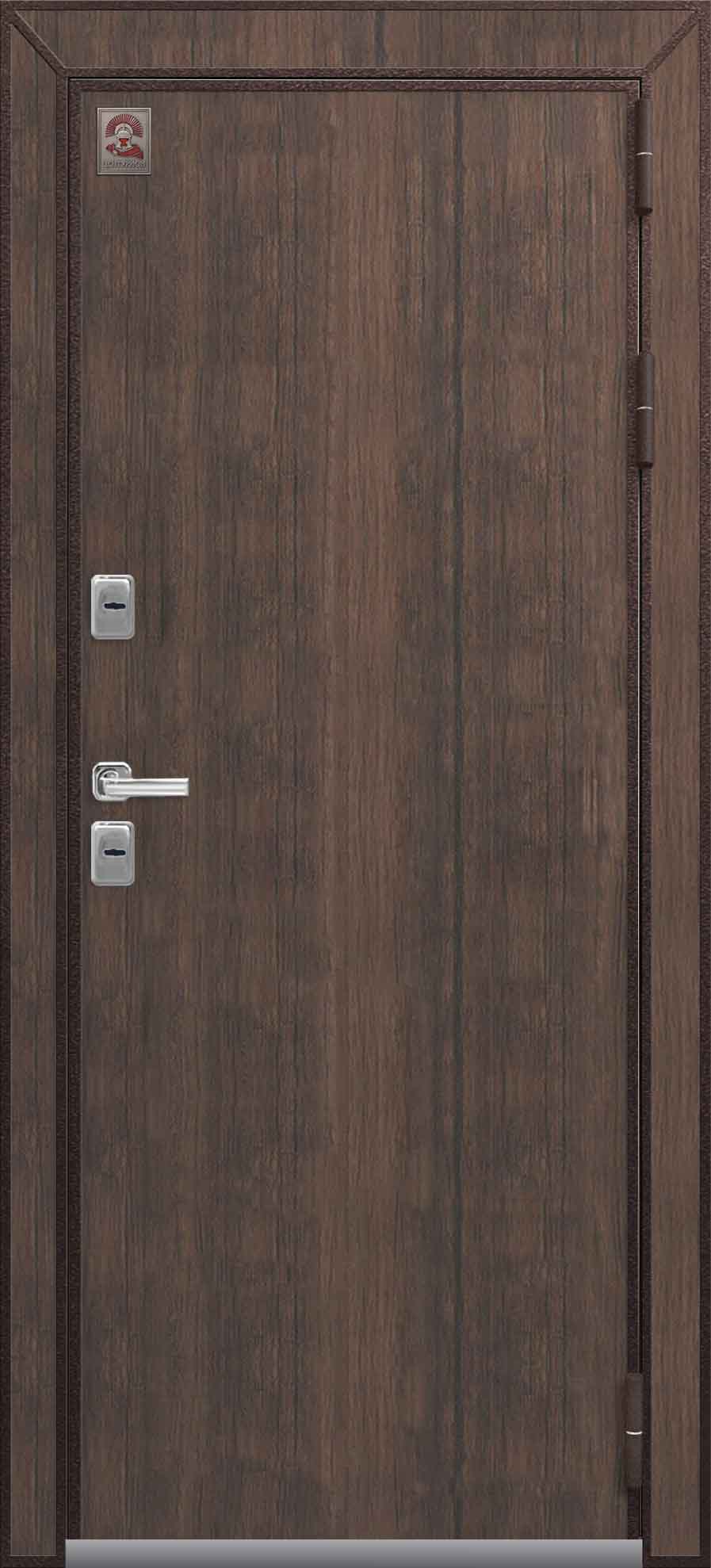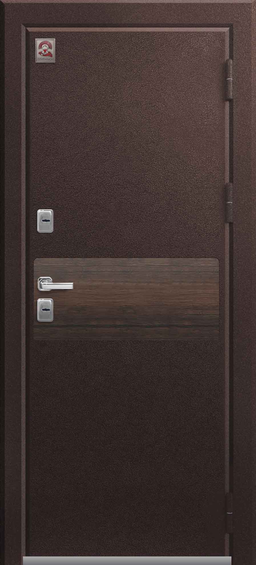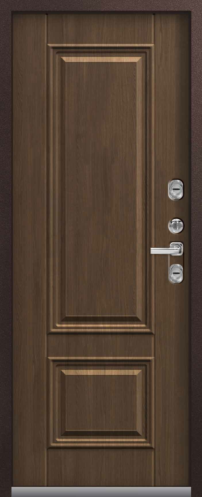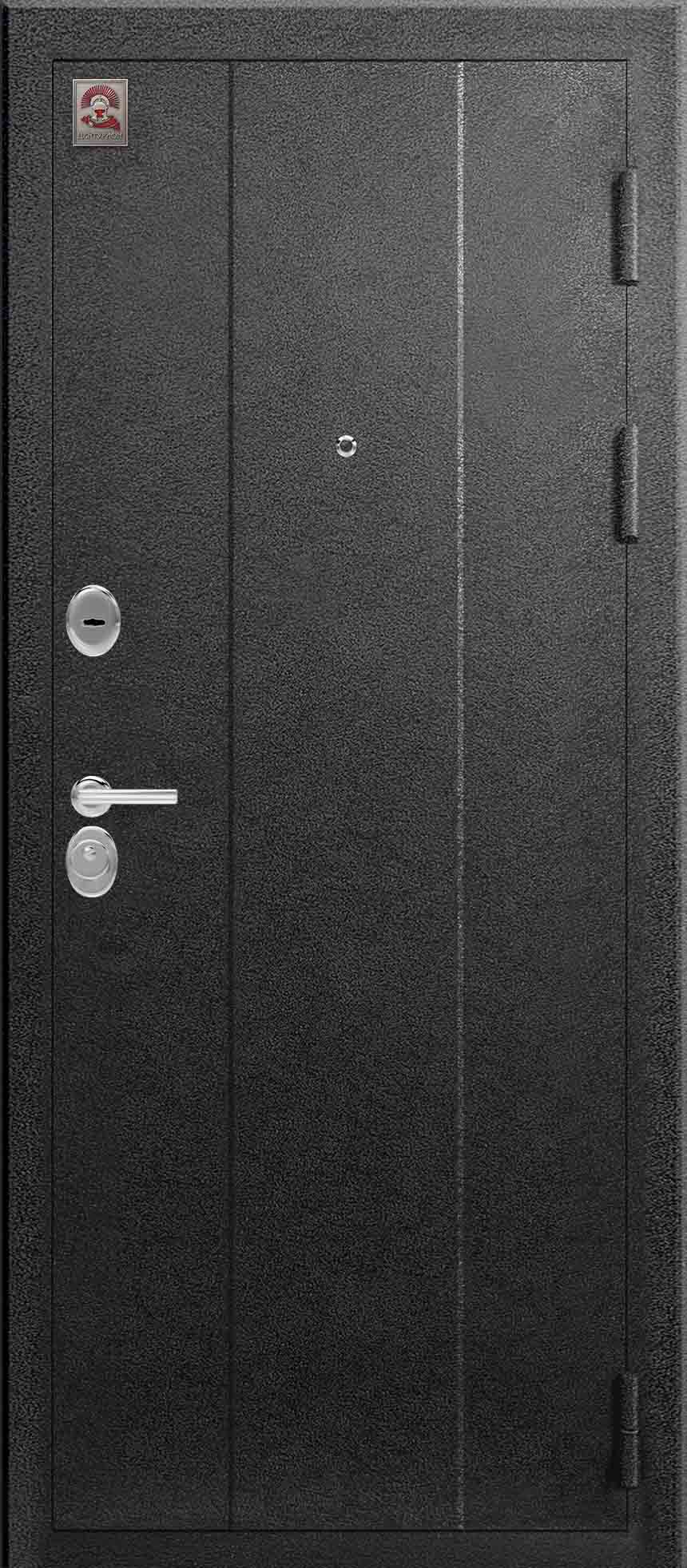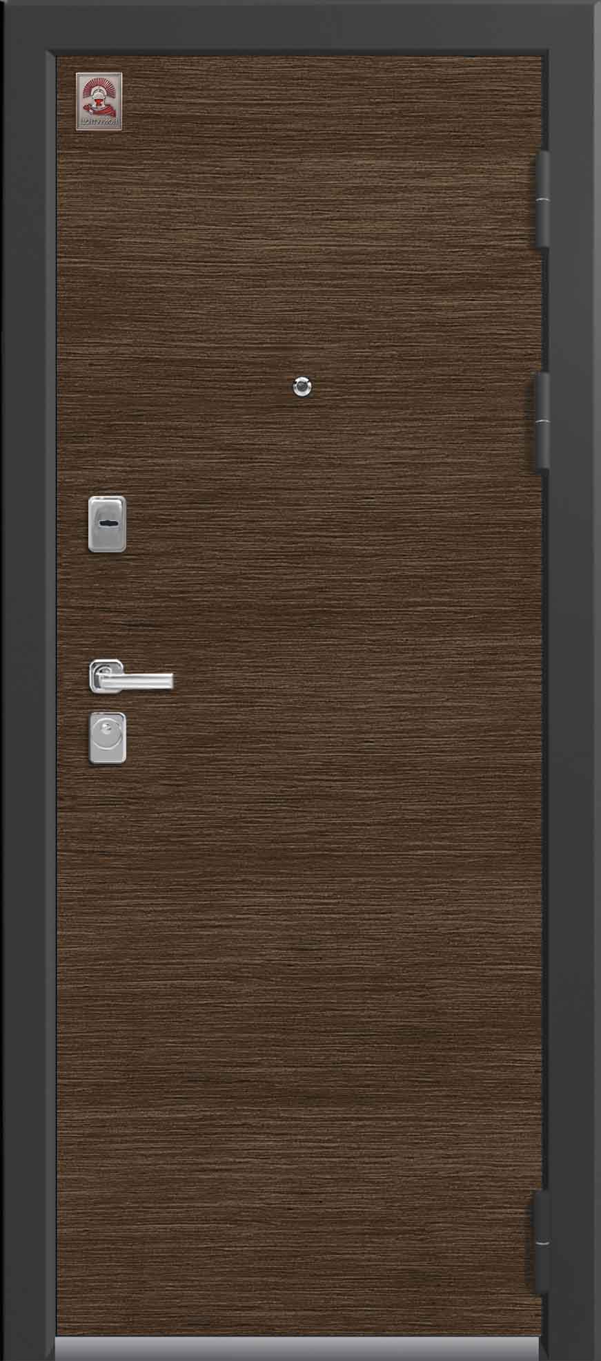 Внешнее исполнение: Металл (шоколад муар, черный муар) Внутреннее исполнение: МДФ 16 мм Цвет внутренней панели: миндаль, дуб полярный Толщина металла: 2.0 мм Толщина полотна: 120 мм Глубина короба: 175 мм Наполнение: Пеноплекс Терморазрыв: да Контур уплотнения: 1 магнитный + 2 Замки: - 2 сувальдных замка: Гардиан 20.01- 5 ригелей (под заказ: CISA) Эксцентрик (регулятор притвора): да Цилиндр (ключ-вертушка): нет Броненакладка на цилиндр: нет Накладка с автоматическими шторками под сувальдный ключ: да Ночная задвижка: да Ручка раздельная: да Глазок: нет Нержавеющий порог: да Монтажный уплотнитель AirTape: да Фольгированный утеплитель на коробе: нет Противосъемные штыри: да Петли: 3