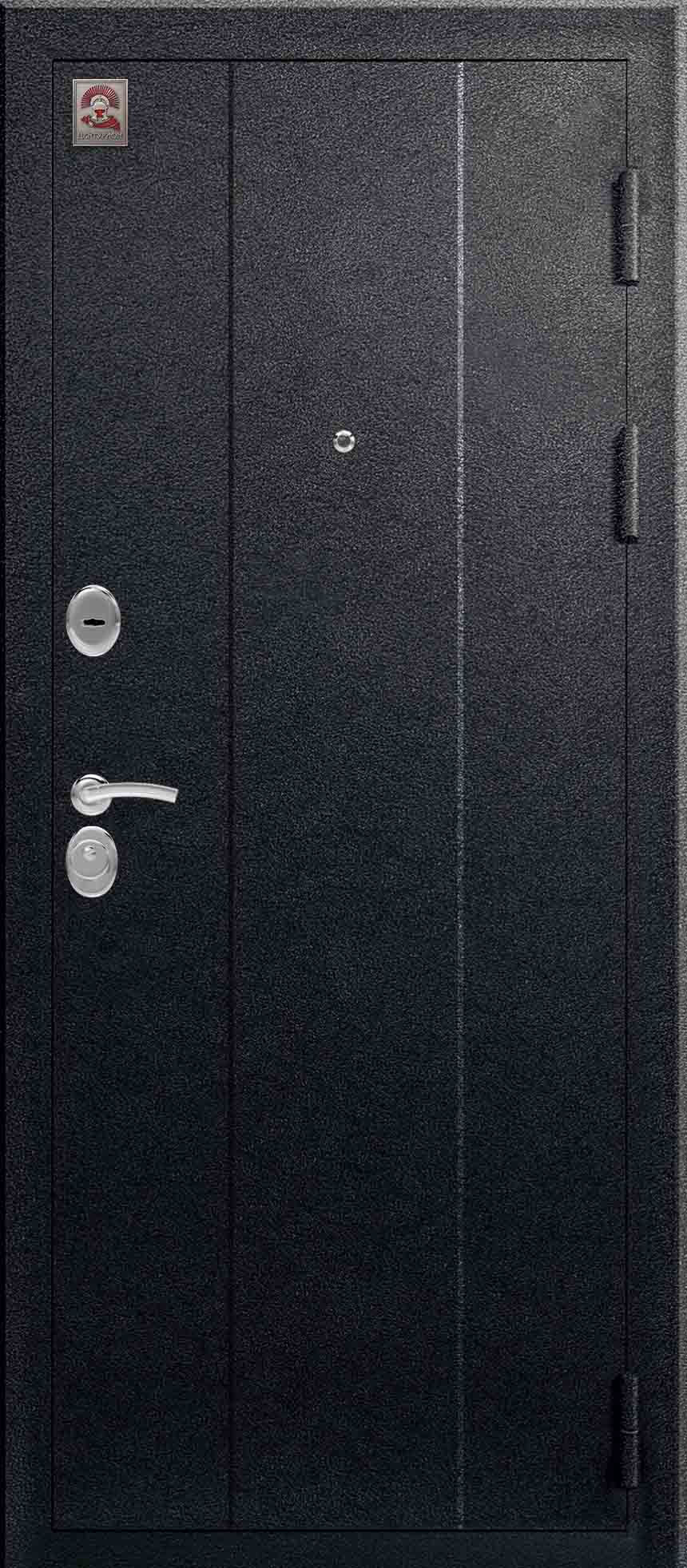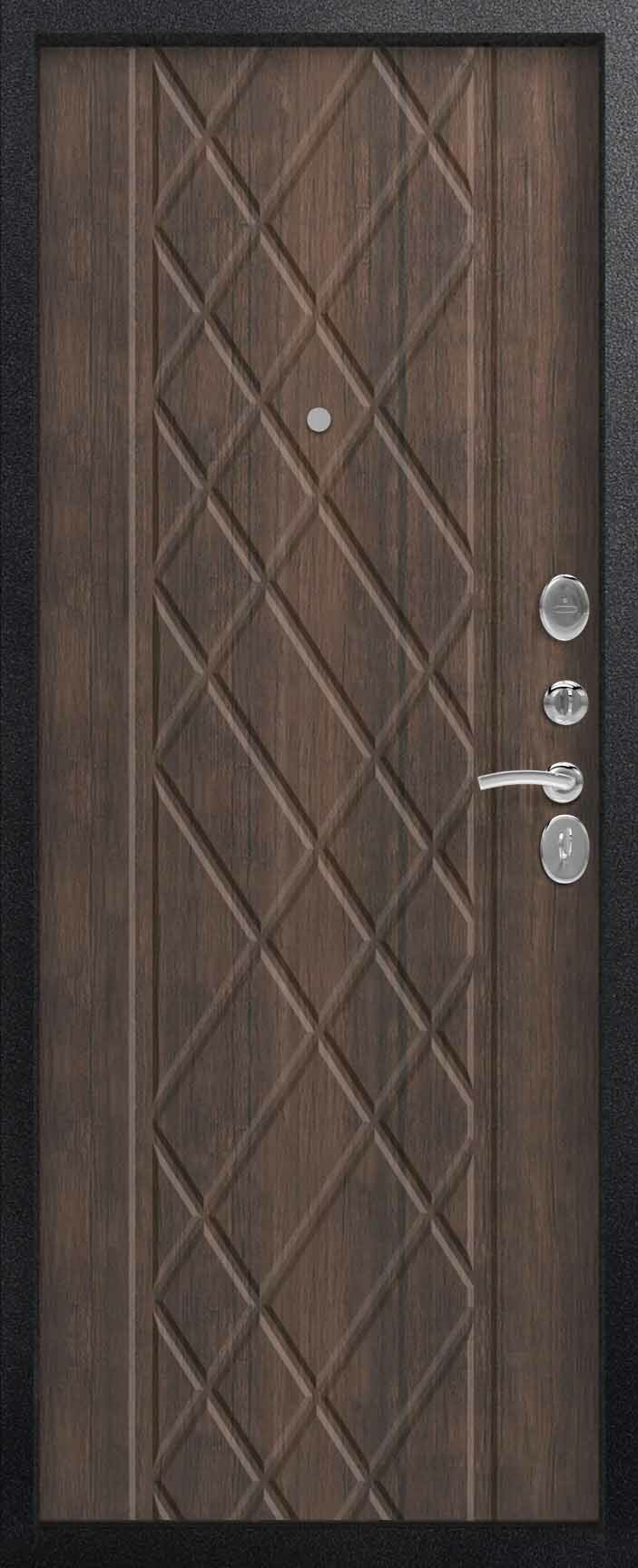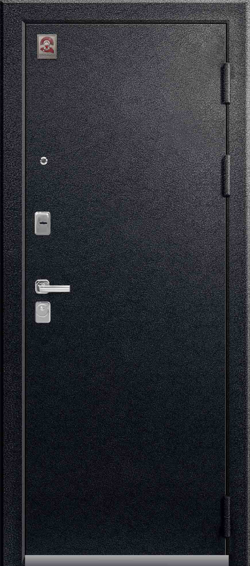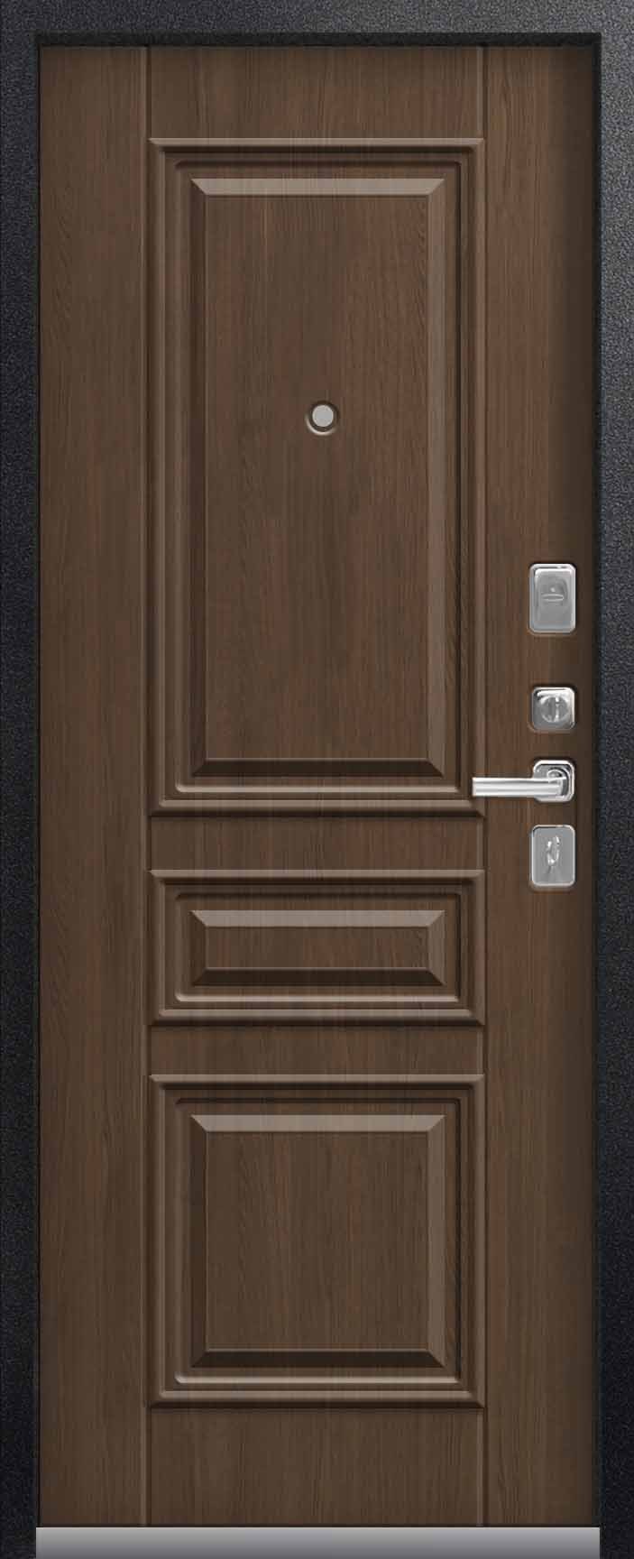 Внешнее исполнение: Металл (черный муар) Внутреннее исполнение: МДФ 16 мм Цвет внутренней панели: тиковое дерево, седой дуб Толщина металла: 1.4 мм Толщина полотна: 100 мм Глубина короба: 125 мм Наполнение: Пенополистирол Терморазрыв: нет Контур уплотнения: 3 контура Замки: 2 замка: Гардиан 30.01, 32.11 Эксцентрик (регулятор притвора): да Цилиндр (ключ-вертушка): да Броненакладка на цилиндр: да Накладка с автоматическими шторками под сувальдный ключ: нет Ночная задвижка: да Ручка раздельная: да Глазок: да Нержавеющий порог: нет Монтажный уплотнитель AirTape: нет Фольгированный утеплитель на коробе: нет Противосъемные штыри: да Петли: 3
