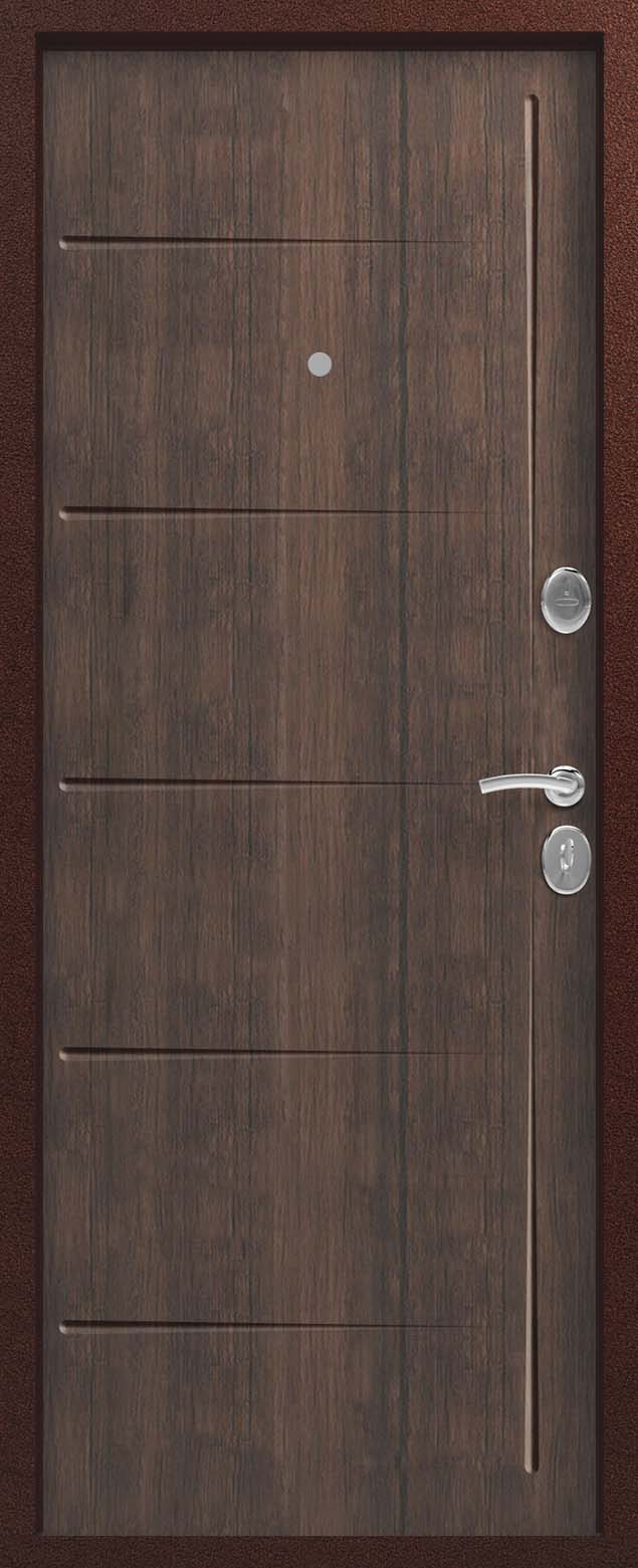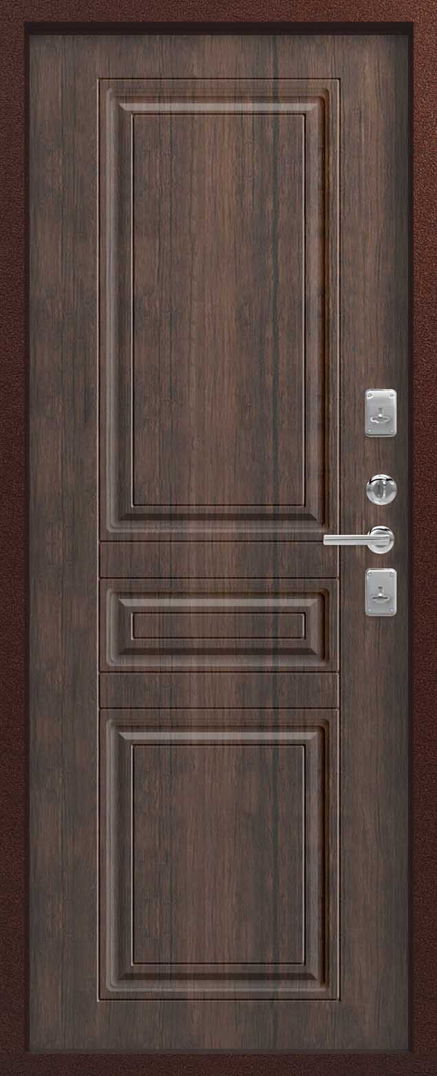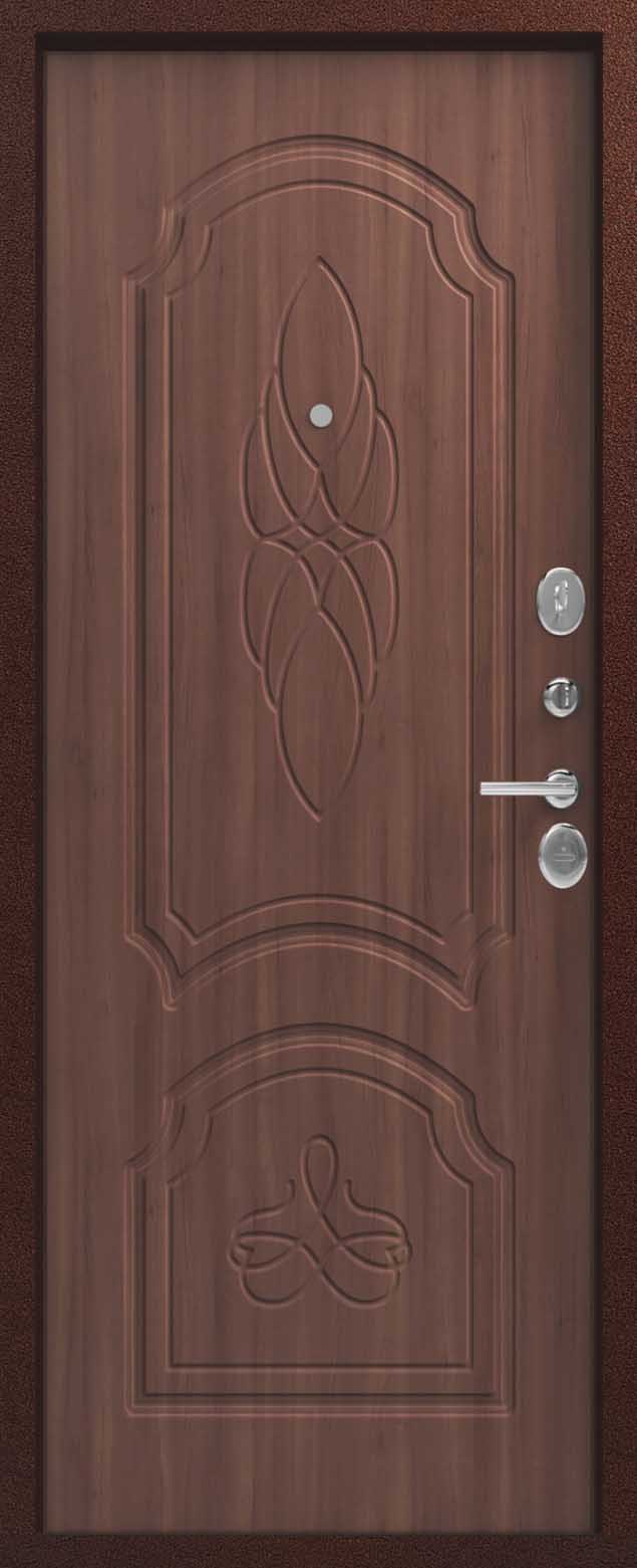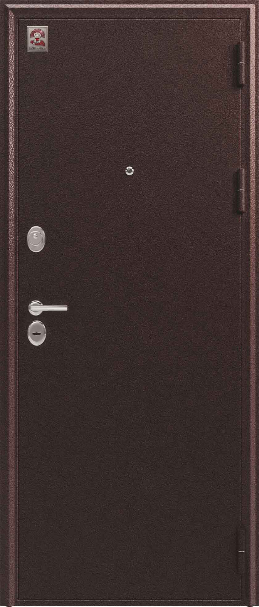 Внешнее исполнение: Металл (медный муар) Внутреннее исполнение: МДФ 10 мм Цвет внутренней панели: седой дуб, тиковое дерево Толщина металла: 1.2 мм Толщина полотна: 100 мм Глубина короба: 135 мм Наполнение: Пенополистирол Терморазрыв: да Контур уплотнения: 2 Замки: 2 сувальдных замка: Гардиан 10.11, 10.01 Эксцентрик (регулятор притвора): да Цилиндр (ключ-вертушка): нет Броненакладка на цилиндр: нет Накладка с автоматическими шторками под сувальдный ключ: да Ночная задвижка: да Ручка раздельная: да Глазок: нет Нержавеющий порог: нет Монтажный уплотнитель AirTape: нет Фольгированный утеплитель на коробе: нет Противосъемные штыри: да Петли: 3
