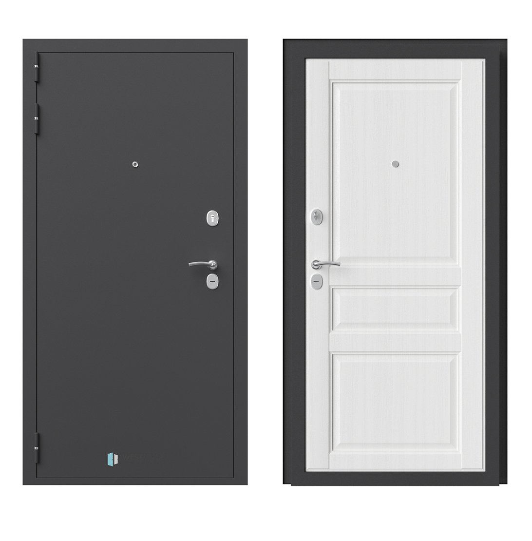 Внешнее исполнение: Металл (черный муар) с молдингом Внутреннее исполнение: МДФ 16 мм Цвет внутренней панели: "софт-тач" (софт ясень грей, софт ясень белый) Толщина металла: 2.0 мм Толщина полотна: 110 мм Глубина короба: 160 мм Наполнение: Пенополистирол + мин. плита Терморазрыв: нет Контур уплотнения: 1 магнитный + 2 Замки: Гардиан 30.01, 32.11 (под заказ: CISA, KALE) Эксцентрик (регулятор притвора): да Цилиндр (ключ-вертушка): да Броненакладка на цилиндр: да Накладка с автоматическими шторками под сувальдный ключ: да Ночная задвижка: да Ручка раздельная: да Глазок: да Нержавеющий порог: да Монтажный уплотнитель AirTape: да Фольгированный утеплитель на коробе: нет Противосъемные штыри: да Петли: 3