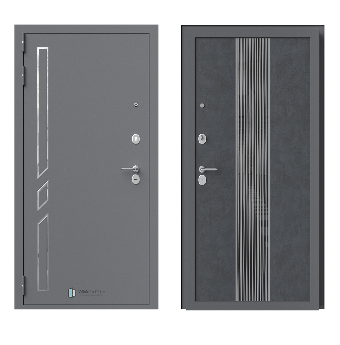 Толщина короба - 100 мм. Толщина конструкции по металлоконструкции — 87 мм. Утепление конструкции и короба, 3 контура уплотнителя: 2 на полотне и 1 на коробе, 3 стандартные петли, 3 противосъёмных ригеля, крепление через короб Ширина наличника от короба 50 мм. Размеры:2050×860мм, 2050×960мм В стоимость конструкции входит: Покраска в стандартные цвета (муар:чёрный) BORDER G 9-6 (основной сувальдный) + BORDER G 1-8 (дополнительный цилиндровый) Комплект фурнитуры «Wst 1»; Хром, Золото (Ручка 26, глазок, Овальные накладки со скрытым креплением: 2 с автошторкой под сувальду + 2 под цилиндр, ЦМ ключ-вертушка) Панель внутренняя в стоимость конструкции не входит, оплачивается дополнительно